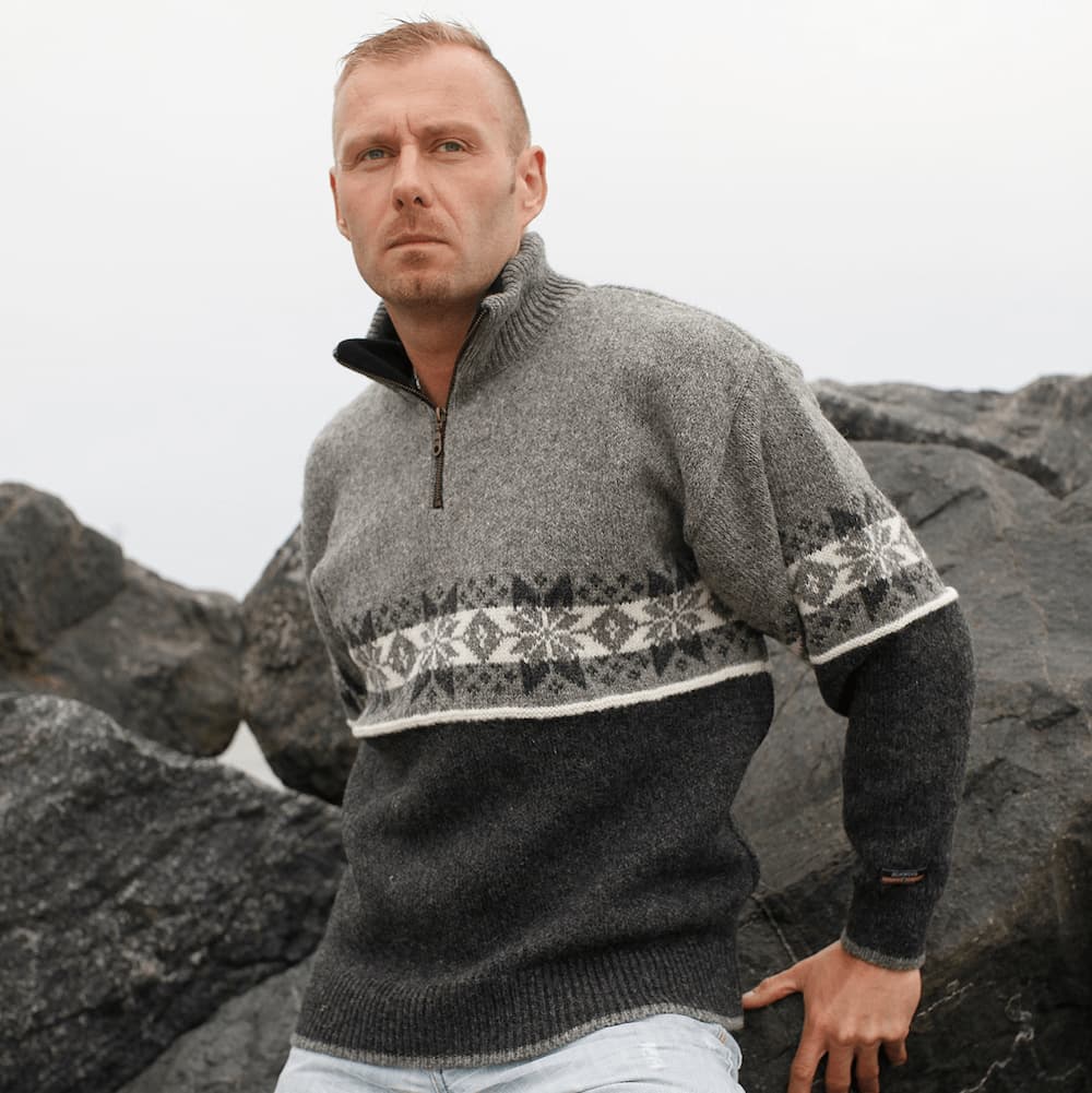 Blød Islænder Sweater I Originalt Mønster Af 100% Uld XXL = Str 46 Fra Uldhuset